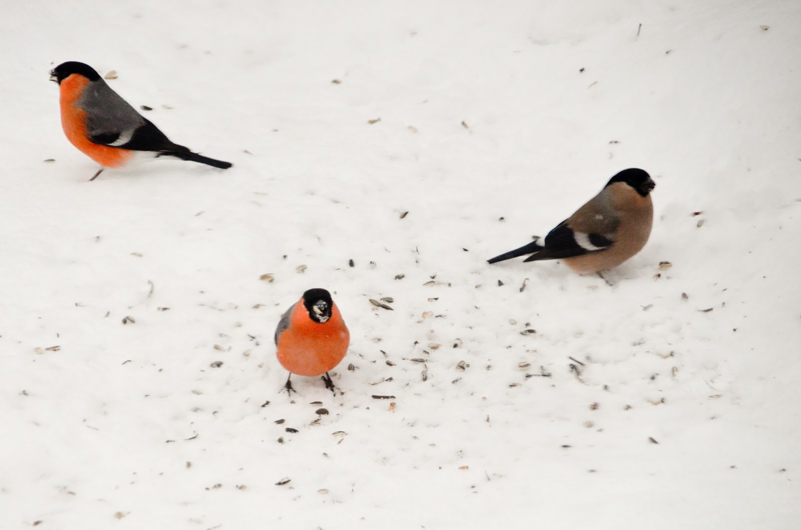 Vi vill önska er alla en riktigt GOD JUL med några vintriga bilder. Vackert är det, men man drar sig för att gå ut, t.o.m katten Kjell strejkar varje morgon för att slippa gå ut i kylan när vi ska iväg till jobbet. Fåglarna har svårt att hitta mat i skogen nu och vi har dagligt besök av några domherrar som kommer och äter frön. Det är mysigt att bo nära naturen! Vi har inte sett några älgar än, men jag hoppas på att få se någon denna vintern också.